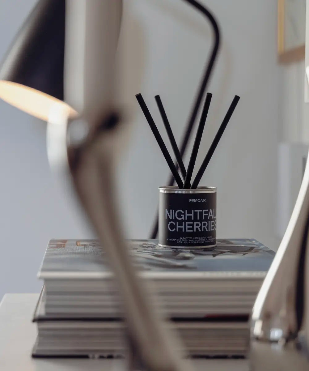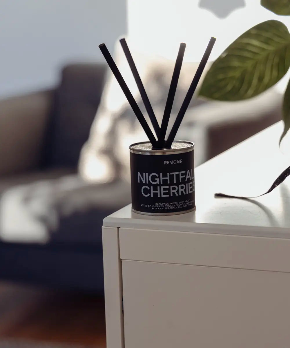Nightfall Cherries sprider en djup, fruktig doft där mörka körsbär möter varm träighet. Sandelträ och tonka ger stadga och lugn, medan den mjuka blommigheten håller doften rund och balanserad över tid.